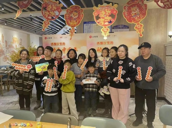 在河北区中铁国际城必胜客餐厅,河北区文化和旅游局、天津必胜客、天津杨柳青画社、鸵鸟墨水联合举办“国色知春味 文化进万家”西餐厅里的非遗动画中国年活动。活动邀请7组青年家庭来必胜客感受西餐厅里的动画中国年。探秘杨柳青年画里的天津娃娃哪吒、体味中国传统色彩下的满满春意以及欣赏一棵青藤上烙出的非遗之花,共同体会非遗里的力量。现场还邀请了国家级非遗项目葫芦制作技艺的传承人带领参与家庭在一个个可爱的小葫芦上绘制“葫芦娃红包发射器”。