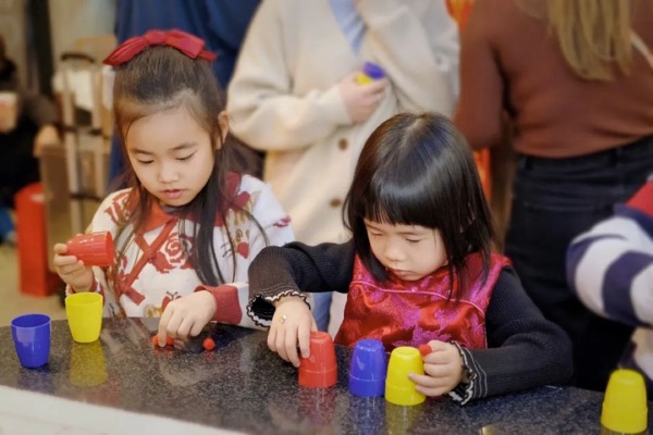 肖老师还带来了魔术道具送给小朋友,现场教授“三仙归洞”的古典戏法,小朋友们化身小小传承人沉浸学习其中,“今天教给大家技巧,回去也要勤学苦练,就能行云流水谁也看不到破绽啦”,肖老师循序善诱的传承着戏法的精髓,让更多人了解非遗并传承下去。