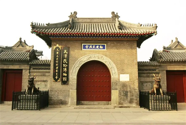 天后宫原名天妃宫,俗称“娘娘宫”,坐落于天津三岔河口之海河西岸,宫南、宫北大街(今古文化街)正中,始建于元泰定三年(1326 年),明永乐元年(1403年)重建,是中国现存年代最久的天妃宫之一。建筑群规模庞大,气势雄伟壮观,庙宇坐西朝东,面向海河,占地面积5352平方米,建筑面积1734平方米。沿中轴线自东向西依次有戏楼、幡杆、山门、牌楼、前殿、大殿、藏经阁、启圣祠。两侧配以钟楼、鼓楼、关帝殿、财神殿、其他配殿及过街楼张仙阁等建筑。
