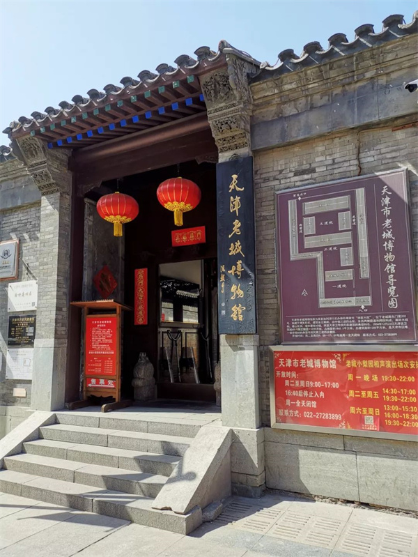 天津老城博物馆位于鼓楼东街,为清末民初英商麦加利银行买办徐朴庵旧宅,建于民国初期。徐朴庵旧宅的建筑门楼坐北朝南,位于大院东南角。大院由中部三进四合院、东西两箭道及东西两跨院构成。整体占地面积1920.5平方米,中部正院正房、厢房各面阔三间,进深一间。中后院正房面阔五间,进深一间,厢房各面阔三间,进深一间,四面檐廊环绕相连。2000年起在此筹建全国首家捐赠博物馆,定名为天津老城博物馆,2004年正式对外开放。
