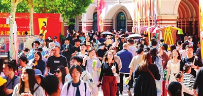 近段时间,继“特种兵旅游”之后,一种名为“城市漫步”(“City Walk”)的旅行方式受到年轻人的推崇。旅游平台数据显示,“十一”期间,城市漫步搜索量同比增长7倍多,该平台热点榜推出的城市漫步路线中,天津海河沿线成为来自全国各地游客的首选。