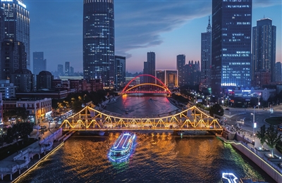 乘船夜游,两岸流光溢彩,璀璨夺目;漫步百年街区,历史风云尽在眼前;打卡商业新空间,时尚活力扑面而来……如今,海河沿岸,水岸经济如千帆竞发,日益成为激发城市活力的新坐标。