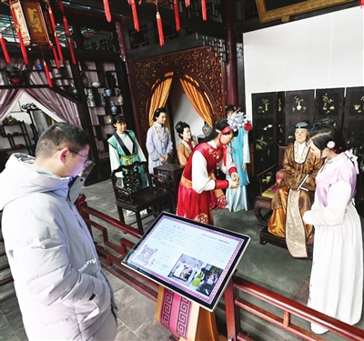 入垂花门、穿花厅、过贾母院、进凤姐家……游客们穿红楼服,逛大观园,深度感受中国传统文化、红楼文化。游客焦洋告诉记者:“我从小就喜欢看《红楼梦》,因为这是1987版电视剧《红楼梦》的拍摄地,特地从天津到这儿来打卡。走在荣国府的建筑群里,好像书中或者电视剧里的人物下一秒就会出现在转角处。”