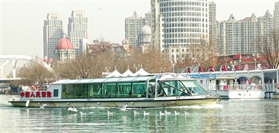 春风和煦,水波粼粼,游船在美景中前行,一幅流动的画卷徐徐展开。从三岔河口、古文化街到津湾广场,从别具特色的小洋楼建筑群到巍峨现代的津门、津塔,中西合璧的风景扑面而来,为游客带来别样体验。“我朋友从南方过来,我带她看了海河两边的一些建筑,听船上的讲解员讲了解放桥的来历,还看到了她心心念念的世纪钟。我告诉她,晚上的时候,海河两岸的灯光秀特别好看,打算另找时间带她来坐坐夜航船。”家住河东区的市民陈晓鸥带着朋友坐船,俨然是一位称职的小导游。