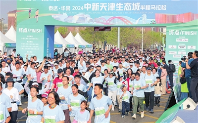 昨日,泰达·华棠2024中新天津生态城首届半程马拉松开跑,来自国内外的5400余名选手参赛。