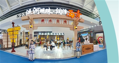在2024中国文化旅游产业博览会上,以“运河明珠·润泽西青”为主题的西青区展台引人注目。展位以京杭大运河为故事线,生动再现河畔古镇杨柳青繁荣的漕运景象,同时,通过曲艺武术表演、民俗文化讲堂、互动体验和70多种文创产品等,全方位呈现了西青特色文化魅力。