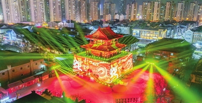 迎新年演出舞台同样精彩。开场舞《安澜如津》、国风曲《意气风发》演绎古今鼓楼故事,还原晨钟暮鼓,天津人生活幸福的景象。节目通过与光影效果相配合进行时间、空间上的延展,形成了层层递进的视觉感受。伴随着古文化街、鼓楼区域的景观灯全部点亮,整个“双鼓(古)”区域流光溢彩,城市灯光与光影秀的舞台演出相融合,让观众沉浸其中,感受亦真亦幻的跨年体验。