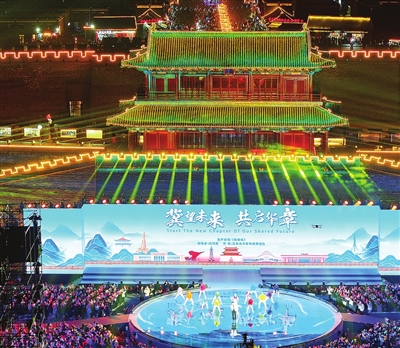 以墙为幕,投射发展成就,寄望美好新年;鼓楼钟声,旧岁余韵不绝,敲响有为新章;三地同庆,融合文旅资源,共创协同发展。昨晚,2025天津“鼓楼津声”跨年系列活动在南开区鼓楼广场举行,炫目的灯光秀与夜景演出轮番上演,共庆新年到来。同时,今年也是京津冀三地首次联动举办跨年活动,北京首钢园、天津鼓楼广场和河北正定古城三地会场携手同庆迎新年,用直播互动形式寄语新春,传递祝福,共谱美好明天。
