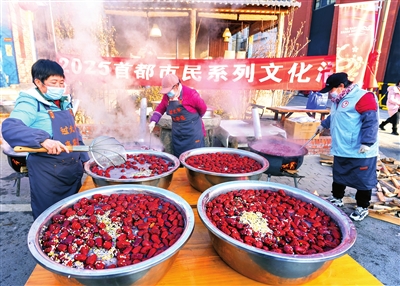 昌平区兴寿镇辛庄村创客街区熬制腊八粥。