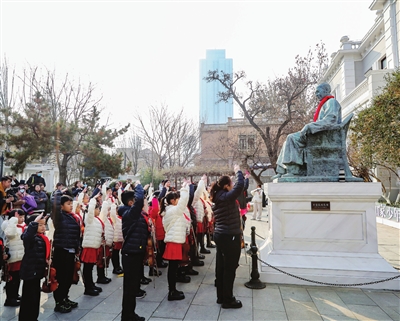 图3 在河北区梁启超纪念馆举办的爱国主义快闪活动。 本报记者 吴迪 摄