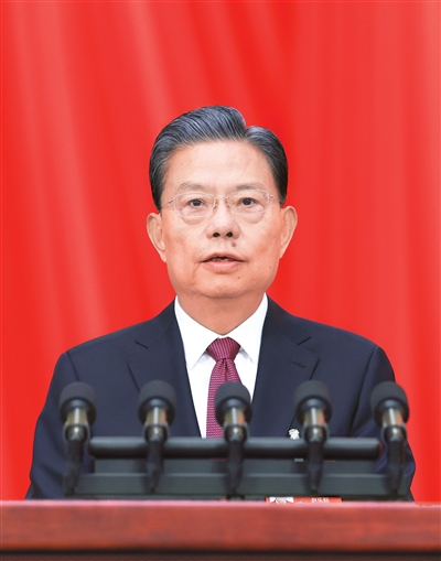 赵乐际在报告中指出,一年来,在以习近平同志为核心的党中央坚强领导下,全国人大常委会深入贯彻落实中央人大工作会议精神,坚持党的领导、人民当家作主、依法治国有机统一,认真履行宪法法律赋予的职责,推动人大工作取得新进展新成效,实现良好开局。一是弘扬宪法精神、履行宪法使命,提高宪法实施和监督水平。健全保证宪法实施的法律制度,制定爱国主义教育法,两次审议国务院组织法修订草案,并决定提请本次大会审议。二是抓住提高立法质量这个关键,推动中国特色社会主义法律体系更加科学完备、统一权威。一年来,共审议法律案34件,通过其中21件,包括制定法律6件、修改法律8件、作出有关法律问题和重大问题的决定7件。三是用好宪法法律赋予人大的监督权,增强监督工作的针对性、实效性。共听取审议“一府两院”22个报告,检查5件法律实施情况,组织开展2次专题询问、7项专题调研,作出2项决议。依法依规办理群众来信来访157212件次。四是加强人大代表工作能力建设,支持和保障代表更好依法履职。以设立代表工作委员会为契机,以加强常委会同代表联系、代表同人民群众联系为抓手,深化和拓展代表工作。五是服从服务国家总体外交,积极开展人大对外交往。六是按照“四个机关”的定位和要求,全面加强常委会自身建设。