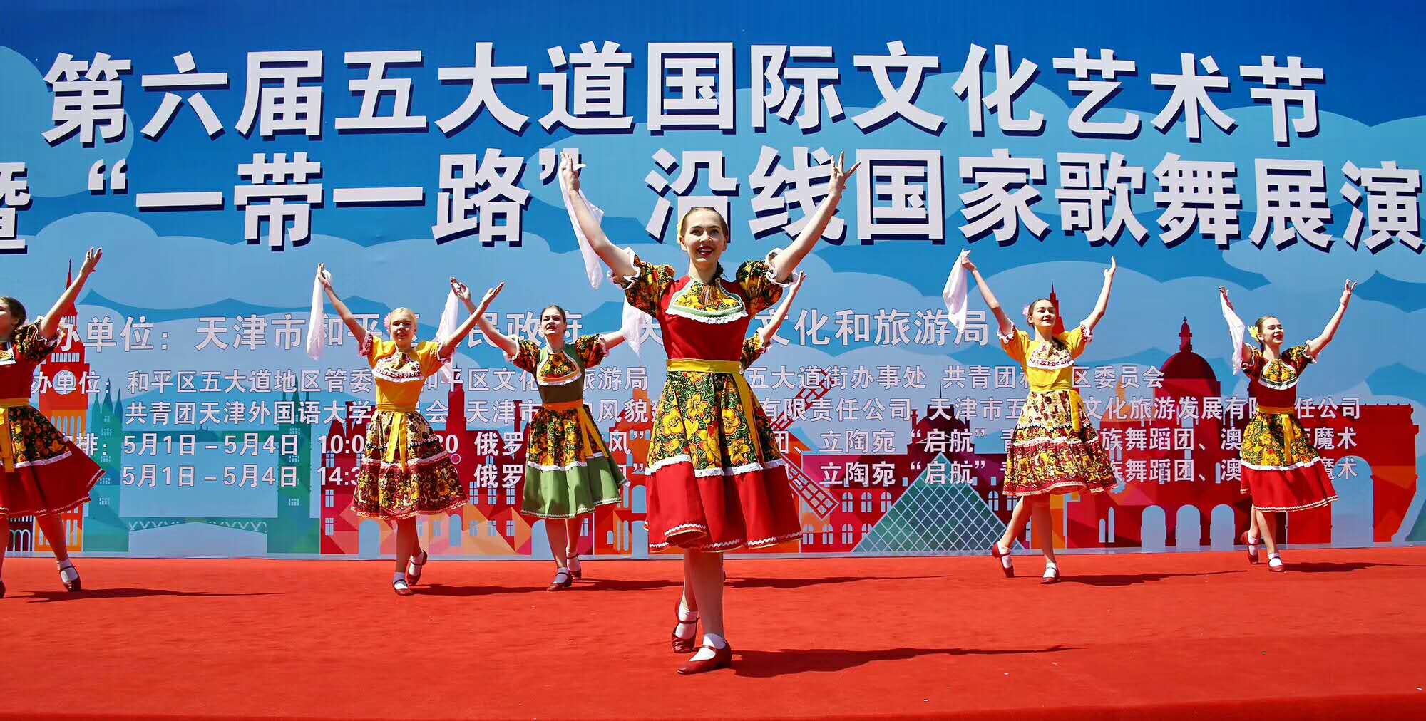 原来,在五大道景区民园广场,第六届五大道国际文化艺术节暨“一带一路”沿线国家歌舞展演开幕了,五大道文化旅游区也迎来了客流高峰。