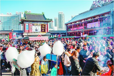 天津鼓楼举办的文化活动深受市民和游客喜爱。焦永普摄/光明图片