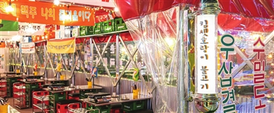 在天塔地铁站附近有这样一个夜市,能让你一秒穿越到韩剧中,吃着烤肉、喝着小酒,说着或令人骄傲或有些糟心的人生,这就是首尔市集夜市。