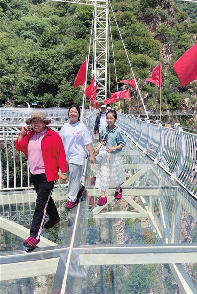 九山顶自然风景区高空玻璃栈道格外吸引游客。