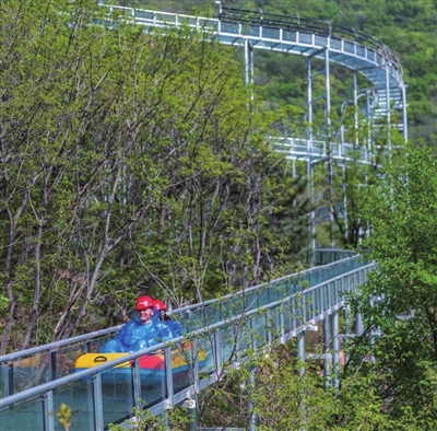 一位北京游客高兴地说道,最近几年来,他每年都要带着家人到九山顶自然风景区游玩,这里的生态环境保护得特别好,绿水青山,令人心旷神怡。景区的游乐项目特别丰富,老人孩子都开心。