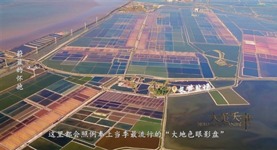 路树强说:“长芦盐场的七彩盐田,现在大家对它都有所了解。记得当时我们开会的时候,有导演说这就像女生的眼影一样。所以我们用了‘大地色眼影盘’的说法,如今大家都知道了这一点,这就是我们的创新所在。焕然一新的美不是刻意追求的新奇,而是本身就存在的新鲜事物。时光在不断推进,会留下痕迹,所以我们在记录时间之美。”