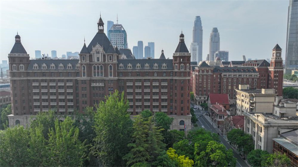 这是无人机拍摄的坐落于解放北路历史文化街区的一处欧式城堡风格建筑。新华社记者 孙凡越 摄