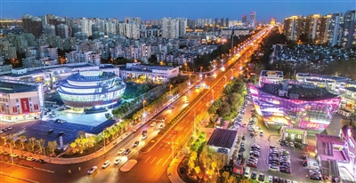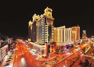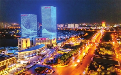 友谊南路夜色中的津典时代广场(左)和莲花酒店(右)如同璀璨的明珠