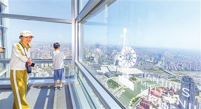 昨日,“天津之心”津塔观光厅正式对外开放,现场吸引众多游客前来“打卡”观光,俯瞰津城美景。