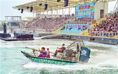 园内特色演出覆盖日夜不同时段。《航母风暴》《飞车特技》等日间表演惊险刺激;周末夜间音乐焰火秀以“烟花星球”为主题,开启夜游航母新体验。据统计,今年上半年,夜间焰火直播观看量超3120万人次,带动旅游收入2086万元。