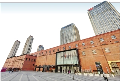 改造过程中,设计团队完整保留了老厂房“长进深、高内空、大跨度”的主体结构,修复了标志性的红色砖墙与巨型煤斗群落,将吊车轨道、屋顶桁架等工业构件转化为空间亮点——以195米高的烟囱为记忆点,解构其形体创造新的场景空间,打造了演绎剧场、中央商业办公花园以及儿童游乐中心等,丰富了多层次的空间体验。通过“玻璃盒子”连接体,新建商业空间与工业遗存有机融合,2.05万平方米的综合体中,既有星巴克工业风甄选店、麦当劳城市旗舰店等定制业态,也有1万平方米的城市开放空间与观景露台。2022年12月开业至今,商场入驻品牌超130家,首进天津品牌占比超30%,累计客流突破160万人次,成为海河东岸新消费走廊的核心节点。