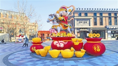 近日,本市河东区棉3创意街区搭建起3组迎新春景观,并在街区入口处悬挂起灯笼,将街区装点得红红火火。