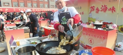 大锅热闹,广场上的八口小锅更热闹,村厨争霸赛将氛围推向高潮。从农历腊月初三开始,来自宁河区15个街镇的民间大厨同台比拼、各展绝活,昨日迎来“终极对决”。最终,来自丰台镇的刘宝海成功夺冠,荣获黑陶奖牌,戴着红花的年猪被抬到了他的身旁,周围的乡亲纷纷涌来和冠军及其奖品合影。刘宝海脸上满是自豪:“我做的‘菊花鱼’‘金玉满堂’,都是宁河的特色菜!”刘宝海介绍,“松鼠鱼”本是南方名菜,他结合宁河盛产鲤鱼、草鱼的特点,改良成“菊花鱼”,让当地特产与经典技法融合,在村厨大赛中一举夺魁。说起奖品年猪,刘宝海早已规划妥当:“回去分给亲戚朋友,猪头肉凉拌、里脊干炸,过年的餐桌更丰盛!我留一块给孩子们做年夜饭,这就是过年的味道。”