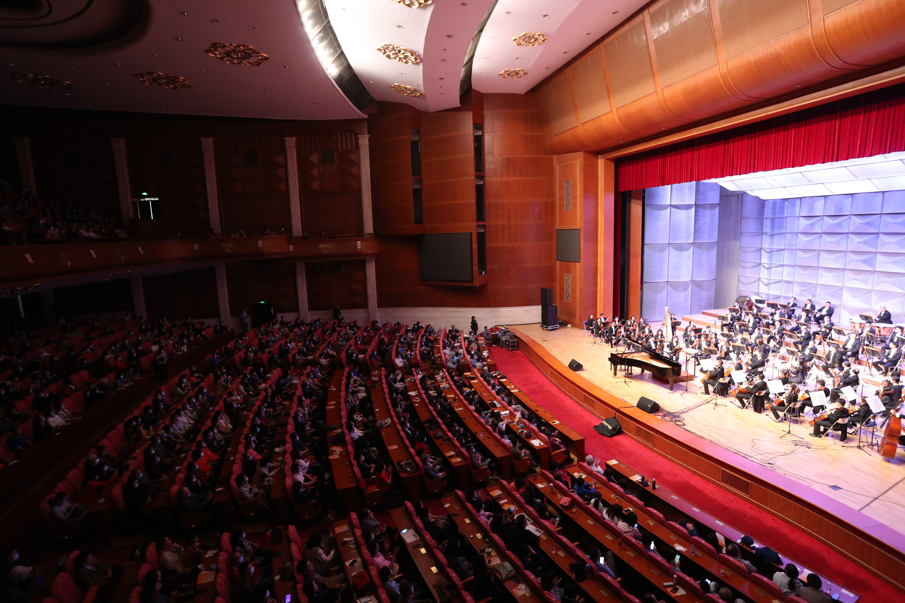 为庆祝中国共产党成立100周年,在天津市委宣传部、市文化和旅游局的正确领导和支持下,5月15日晚,由天津交响乐团打造的惠民系列演出——“梁祝·黄河”经典名曲交响音乐会在天津大礼堂震撼上演,演出由国家一级指挥董俊杰执棒,乐团联手著名小提琴演奏家高参、著名钢琴家谭小棠为观众送上一道中国音乐大餐。当晚大礼堂座无虚席,约1500名观众欣赏了这场震撼演出,现场的气氛层层高涨,雷鸣般的掌声一浪高过一浪。