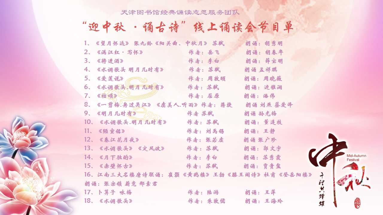 天津图书馆“迎中秋 诵古诗”线上诵读会成功举办