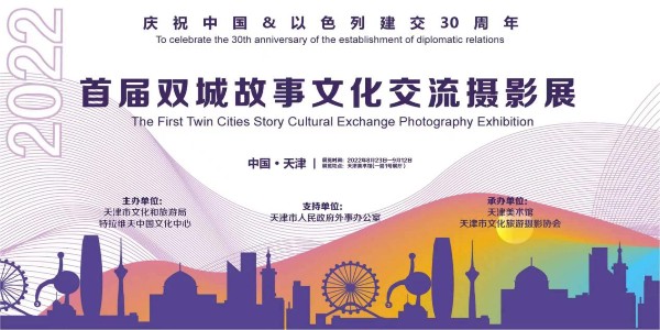 为了庆祝中国和以色列建交三十周年,2022首届“双城故事”文化交流摄影展于8月23日上午十点在天津美术馆开幕。该展览由天津市文化和旅游局、特拉维夫中国文化中心主办,天津市人民政府外事办公室协办,天津市文化旅游摄影协会和天津美术馆共同承办。本次摄影展览共展出作品120幅,其中以色列作品50幅,天津作品50幅,特拉维夫中国文化中心提供作品20幅。