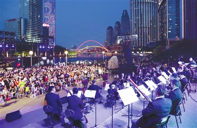 为了形成品牌效应,市文化和旅游局把大量的优质文化资源持续往桥边输出,从4月到10月,半年间坚持做到每周组织安排演出活动。去年,市文化和旅游局组织了近五十场音乐会,同时将“‘桥’见海河 邂逅浪漫”品牌授权海河沿线各区,各区自主进行一些小场景的文化活动,累计开展了100场不同规模的音乐演出活动。张恩铭介绍,演出主力是我市的专业艺术院团和高校的艺术团体,不仅为学生提供演出机会,也为观众呈现了高水平的音乐表演。还有一部分演出力量来自各区文化馆和群众文化团队,通过发挥各自的优势,让桥边音乐汇显得更加丰富多彩。由百场音乐盛宴打造出的天津文化形象,在观众心里留下了深刻印象。