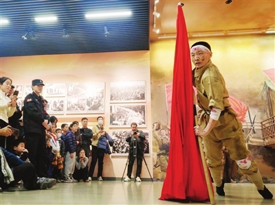 平津战役纪念馆近年来充分发挥红色资源优势,通过多元方式传承红色基因。去年10月,该馆首次与天津歌舞剧院联合在展厅内推出沉浸式文艺演出,由演员们配合讲解员的讲述,把历史故事现场“演出来”。如此,英雄故事的呈现更为直观立体,也更具冲击力,给观众留下深刻印象。