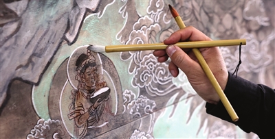 天美重彩研究小组复原了西夏画师“一笔三描”的笔韵。