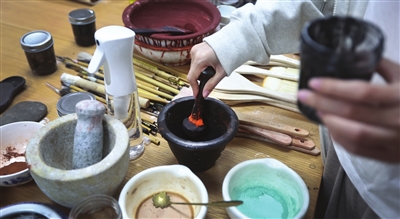用敦煌土、高岭土等调配画板表层泥坯材料。