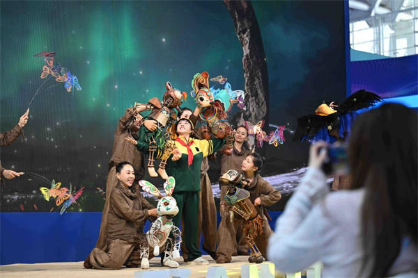 2024中国文化旅游产业博览会上,中国首部XR数字音乐儿童剧《敦煌·九色鹿王》在博览会天津河西展区表演。新华社记者 孙凡越 摄