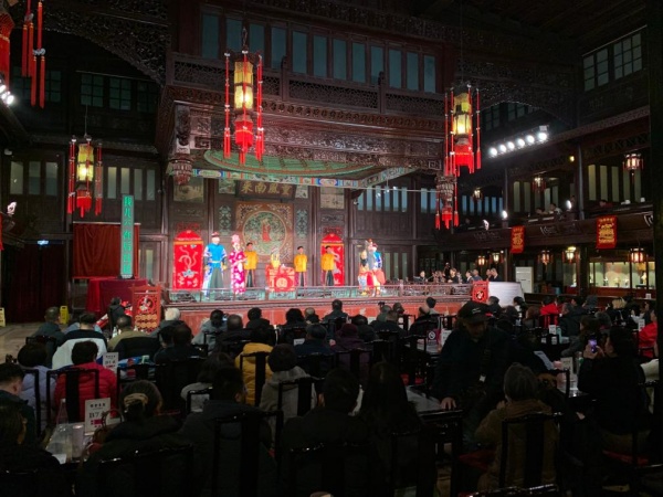 2月2日,游客在天津戏剧博物馆(广东会馆)看京剧。新华社发(受访者供图)