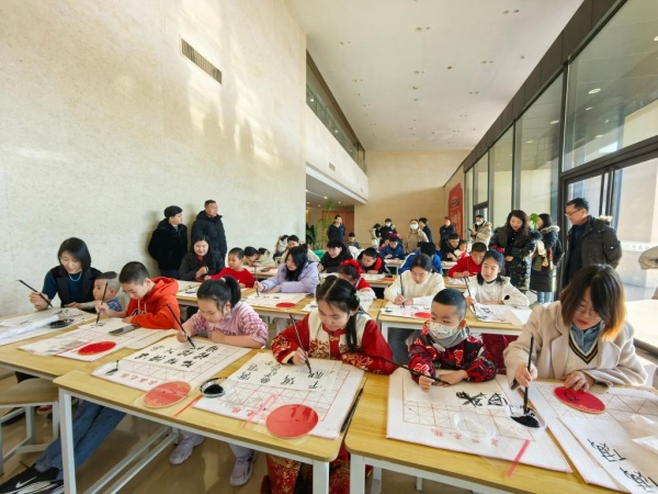 1月30日,天津博物馆举办“博物馆里过大年之品读《殷墟书契》书写巳蛇福卡”活动。新华社发(受访者供图)