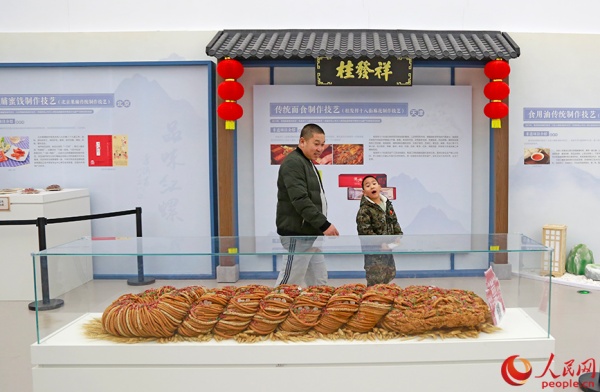 游客观看桂发祥十八街麻花制作技艺项目。人民网记者 崔新耀摄