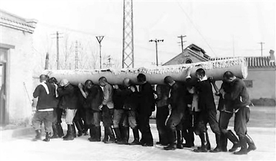 小刘庄河边的天兴永地毯厂老照片。