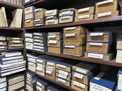 古籍书店内的书架上展示的多是经赵春山之手修复的古籍。