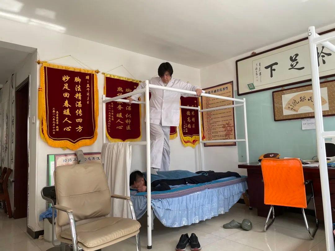 踩跷疗法是一种传统的推拿治疗方法,通过医师的双足在患者肩部、腰背部、臀部、四肢等部位进行节律性的踩踏,以此来达到治疗的目的。作为东丽区的一项市级非遗项目,孟氏踩跷中医疗法历经四代人、百年传承,已成为天津中医文化的一个重要部分。