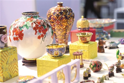 但非遗的发展离不开创新,因此我们只能在产品的用途和设计上进行创新,过去景泰蓝都是工艺品,现在我们针对市场的需要开发了很多小摆件和小挂件,每年我们都会参加很多国内外的产品展销会,和消费者近距离沟通,根据他们的审美和需求设计产品。