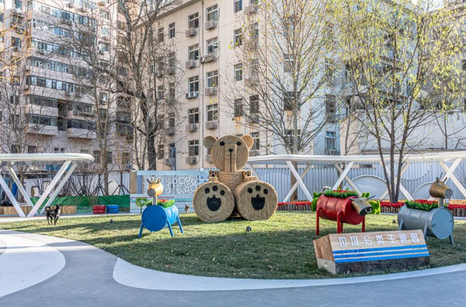同时,将垃圾分类的元素、主题、理念融进公园中。居民在休憩时能了解垃圾分类相关知识,园内由回收材料所制作的小动物惟妙惟肖。