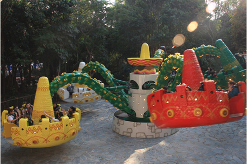 前广场 →炫舞大草帽→椰树攀爬→欢乐转马→愤怒的小鸟→青蛙跳→昆虫大战→疯狂甲壳虫→翻滚音乐船→凌霄飞舞→维京船→无敌风火轮→飞行圣诞树