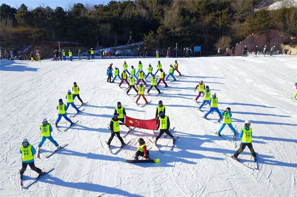 2.盘山滑雪场:盘山滑雪场造雪面积15万平方米,内设初级雪道1条、中级雪道1条、教练教学专用道1条、单板道1条、雪地摩托车道1条以及供初学者专用的滑雪训练区、戏雪乐园。滑雪场的魔毯、拖牵和雪道压雪车以及5000套各种型号的雪具可以满足日接待游客5000余人次。