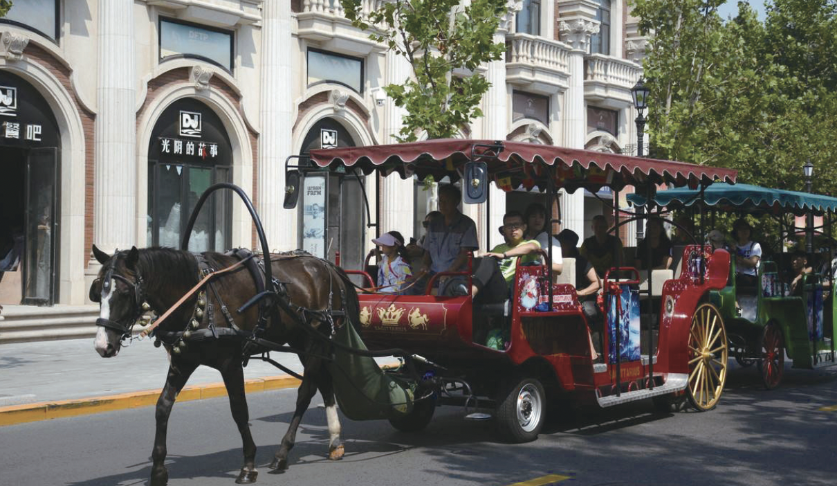 乘马车游名人故居是五大道景区特色旅游项目之一。马车游的路线涵盖了五大道大部分异国风情建筑和名人故居,也是全国唯一可以在柏油马路上行走的马车。坐马车上,听着清脆的马蹄声,游走在五大道上,街道两旁一座座别具特色的小洋楼掩映在树木之间,各种风格的建筑汇聚在一起,构成一幅亮丽的画卷。导游在一旁讲解着风物故事,或与街有关,或与房子有关,让人恍惚忘了身在何处。
