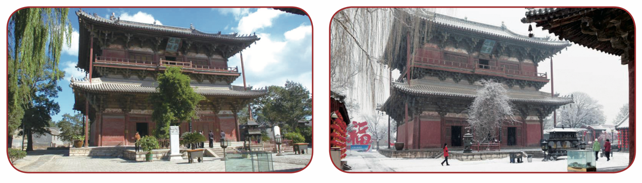 独乐寺,也称“大佛寺”,是中国仅存的三大辽代寺院之一。独乐寺的历史最早可追溯至隋。辽代统和二年(984)重建。穿过渔阳古街,抬头就能看到独乐寺的山门门额上书“独乐寺”3个大字,出自“名吏”严嵩之手。两尊高大的天王塑像守在门后,他们就是有名的“哼”“哈”二将,也是为数不多的辽代彩塑的珍品。观音阁高23米,从外面看分为上下两层,里面实为三层,其中设了平座暗层。观音阁集中国古代木结构建筑之大成,是国内现存年代最早的古代木结构楼阁。阁内一尊高达16.08米的观音塑像矗立中间,因观音像头顶有10个小佛头,而被称为十一面观音像,也是我国现存最高大的彩色泥塑站像。四周墙壁上壁画绘的是元代绘制、明代重描的“十六罗汉和“二明王”,是古代壁画中的珍品。十一面观音像的背后是一尊倒坐观音,有韦驮和关羽的护法神像,寓意苦海无边,回头是岸。