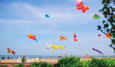 走在东疆湾沙滩景区,各式各样、五彩斑斓的风筝在海边翱翔,令人目不暇接。在亲子风筝制作和飞行体验区,游客们可以一起动手制作风筝,还能聆听非遗老师讲解风筝文化,感受传统文化的魅力。天津港文化传媒有限公司景区运管部主管张晓维介绍:“风筝节已成为东疆湾沙滩景区春季一项重要文化活动。这次风筝节从4月5日至9日举行,包括大型风筝展飞、风筝制作和互动三方面活动。专业风筝展飞中,不仅有传统的串型风筝、海洋系列风筝、天津港‘津港家族’特色风筝等,还有我们特地邀请的吉尼斯世界纪录保持者放飞长度为2023米的龙串风筝。”天津美术学院教师王琛琛昨天专程带学生来东疆湾沙滩景区写生,也带来了自己1岁半的宝宝,她说:“风筝放飞的场面非常壮观,很适合学生练习,孩子也玩得很开心。”