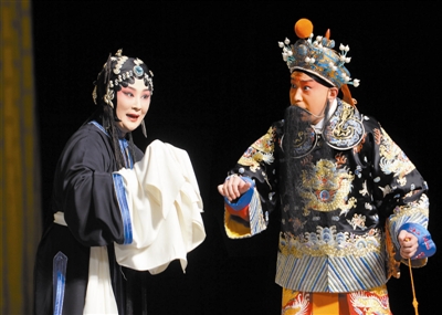 图为吕洋(左)、张建峰在剧中分别扮演王宝钏和薛平贵。本报记者 庞剑摄